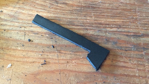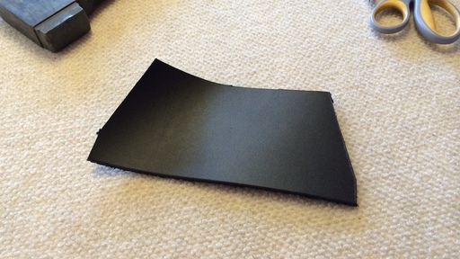 When I was satisfied with the shape and fit of the cardboard template, I removed it, flattened it out, and placed in on a piece of leather. I held it in place while I cut the leather to the same shape and size.