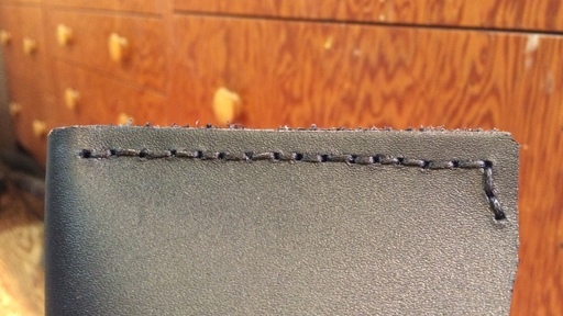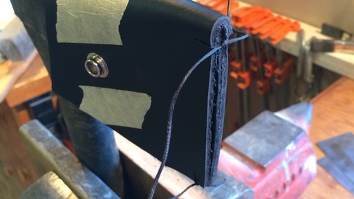At the end of the seam, I tied the ends of the string together between the leather, and shoved them out of sight.