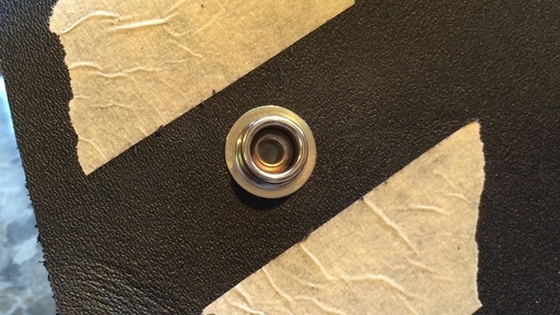 … then placed the front on top. Using the anvil and setter that came with my snaps, I hammered the inside of the snap over until it was firmly secured.